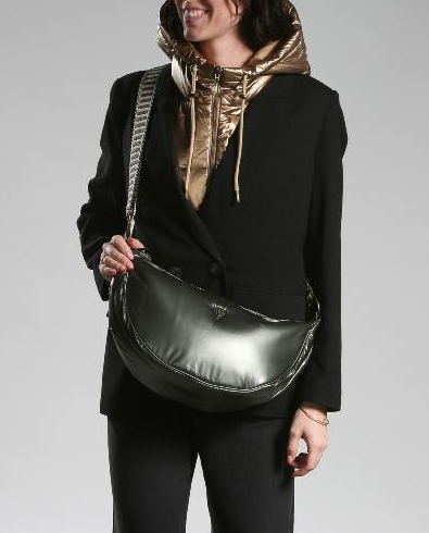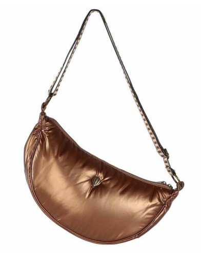 Appréciez le style pratique avec ce sac banane porté travers.Confectionné dans une matière doudoune métallisée douce et légère, il sedécline en couleur unie pour un look moderne. Il dispose d’une poche intérieurezippée pour vos essentiels, ainsi que d’une petite poche zippée à l’arrièrepour vos objets de valeur ou vos petits indispensables. L’anse amovible vousoffre la liberté de le porter à votre façon. Idéal pour combiner confort,fonctionnalité et élégance urbaine.