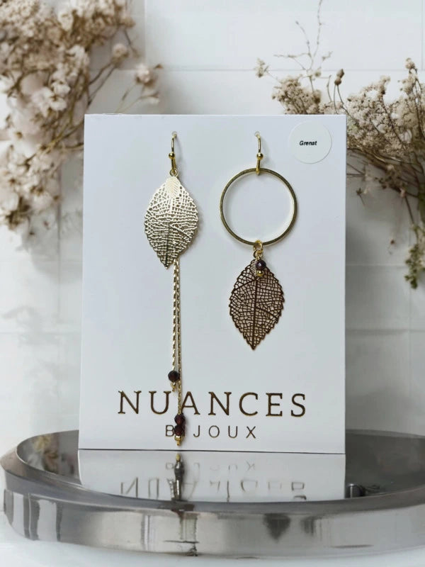 Pendentifs feuilles et chaînes en laiton plaqué or