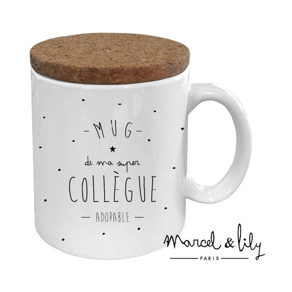 MUG AVEC SON COUVERCLE EN LIÈGE " MUG DE MA SUPER COLLÈGUE ADORABLE " Marcel & Lily